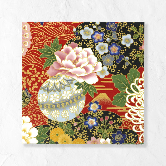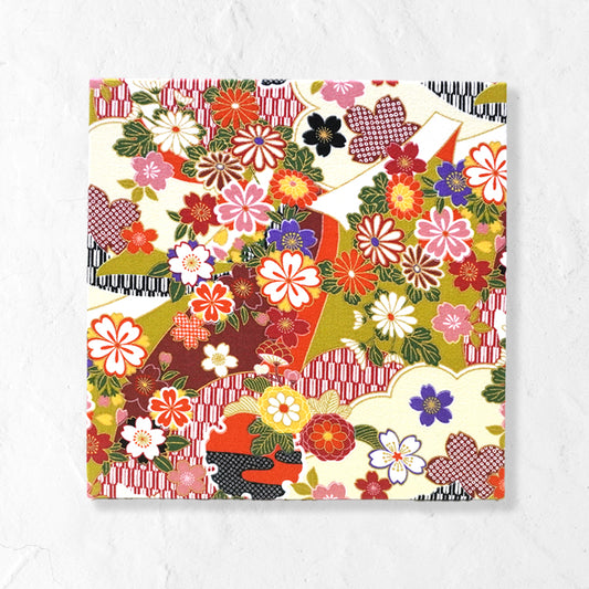 Japanese Kimono Fabric Panel – Grand Blossom-Large Chrysanthemum, Mt. Fuji, Cherry Blossom, Plum & Floral Temari Ball pattern, traditional wall art
