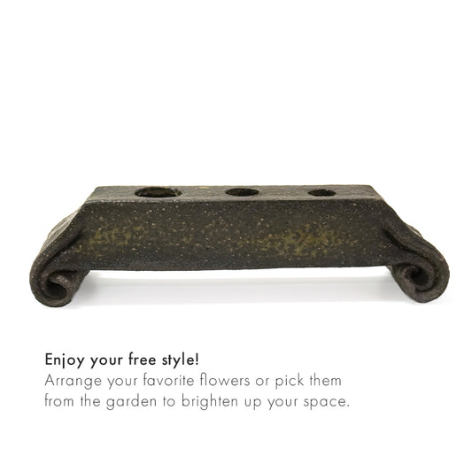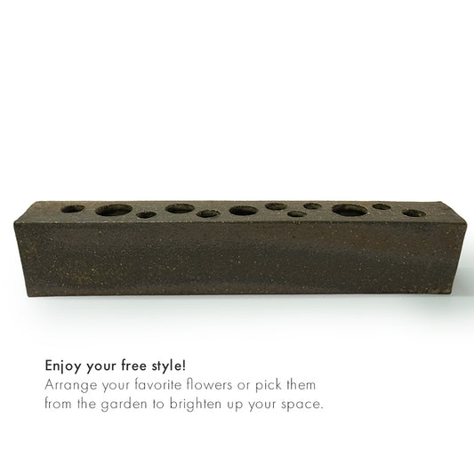 Japanese Pottery Horizontal Flower frog vase, Brown-black, Shigaraki-yaki – Handmade Ceramic Art, Wabi-Sabi Minimalist Decor