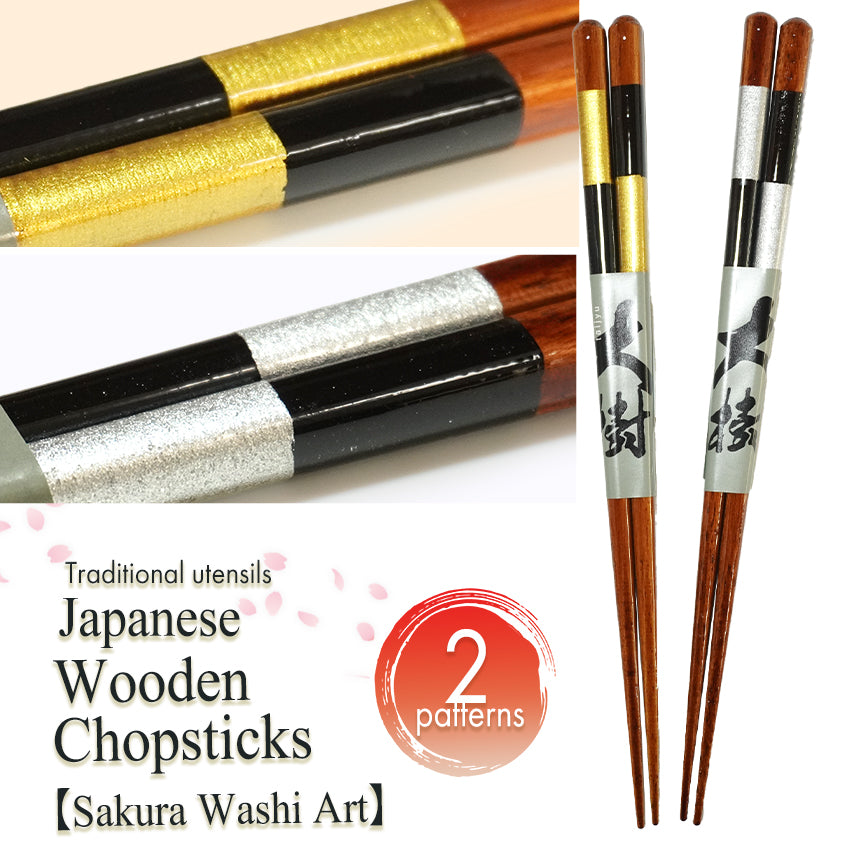 Japanese Wooden Chopsticks – Checkered Pattern Inspired by Ichimatsu pattern, Gold & Silver, Natural Wood, Lightweight & Non-Slip – Traditional Japanese utensils